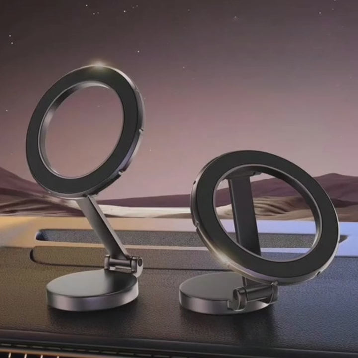 Strong magnetic phone holder with vacuum suction technology. Compact, portable, and perfect for hands free viewing anywhere.
